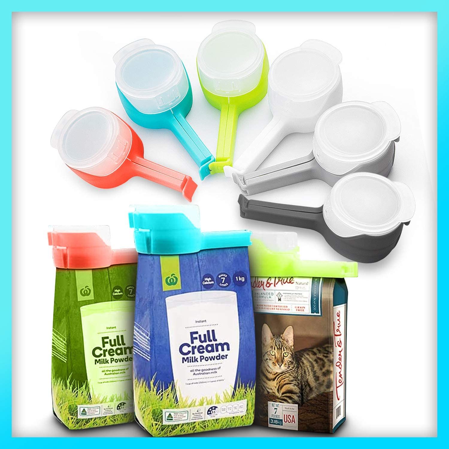 Adjustable multi-functional plastic food preservation and sealing clips for home kitchens, suitable for storing and packaging snacks, chips, and pet food (6 pcs), and also includes a tea moisture-proof and discharge nozzle plastic bag clip for sealing.