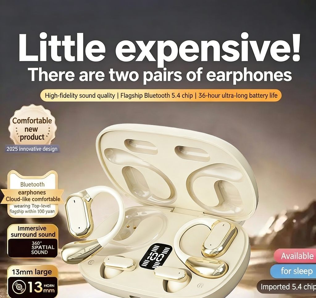 New high-value wireless Bluetooth earbuds for couples, in-ear + ear-hook 2-in-1, dual earbuds for sports, music listening, portable, long-life, open-back, wireless, OWS TWS, ENC noise cancellation, IPX4 waterproof. 复制